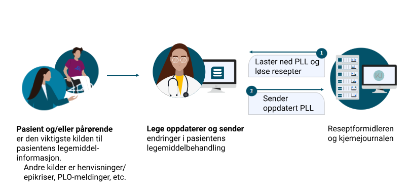 Pasientens legemiddelliste er en samlet og oppdatert oversikt over relevante opplysninger om pasientens legemiddelbehandling. Opplysningene i pasientens legemiddelliste er tilgjengelig på tvers av helsetjenesten gjennom virksomhetenes journalløsninger, reseptformidleren og kjernejournal. PLL er for tiden under utprøving. Nasjonal innføring er planlagt i perioden 2026–29.